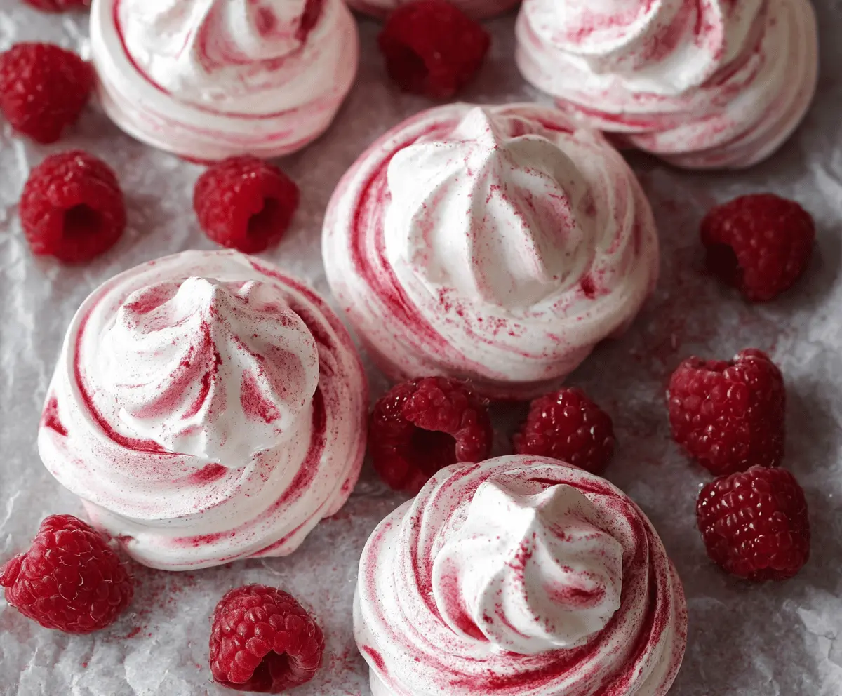 Enjoy these light and beautifully striped meringue cookies bursting with raspberry flavor!