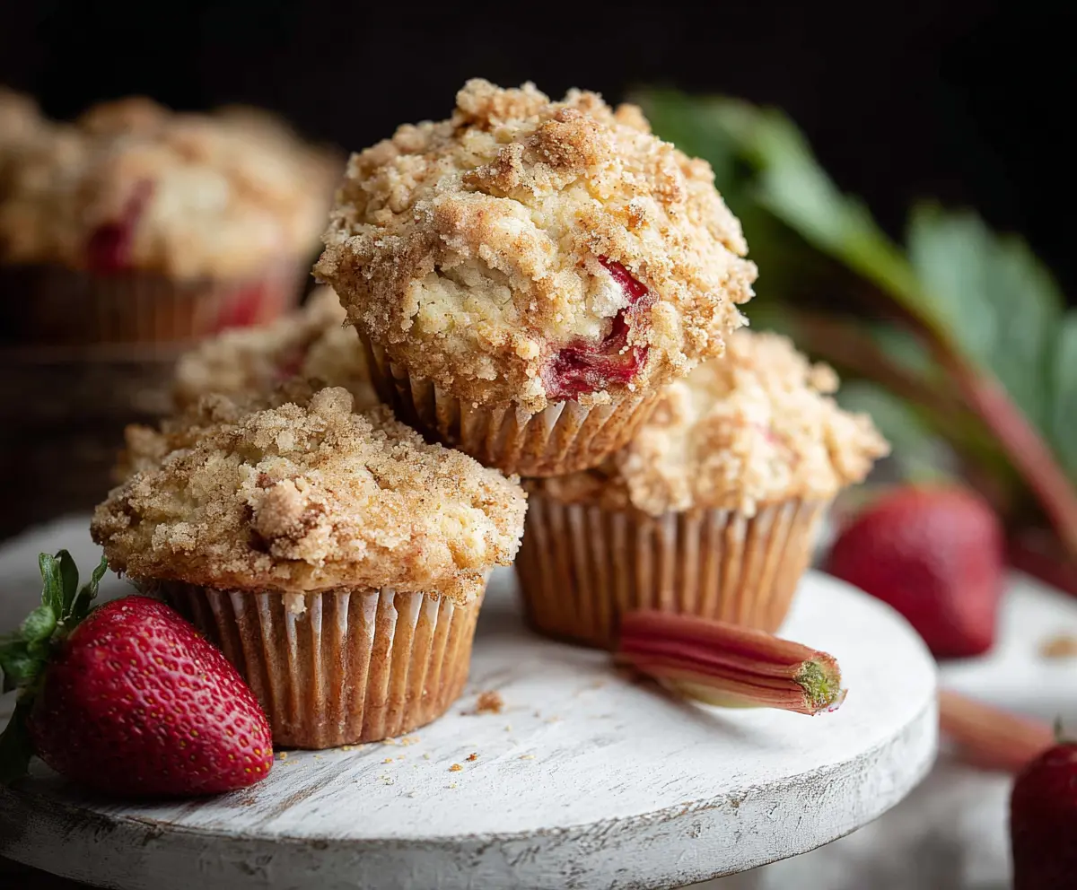These Rhubarb Strawberry Muffins are sure to be a hit with their sweet and tart flavors combined. Enjoy every bite!