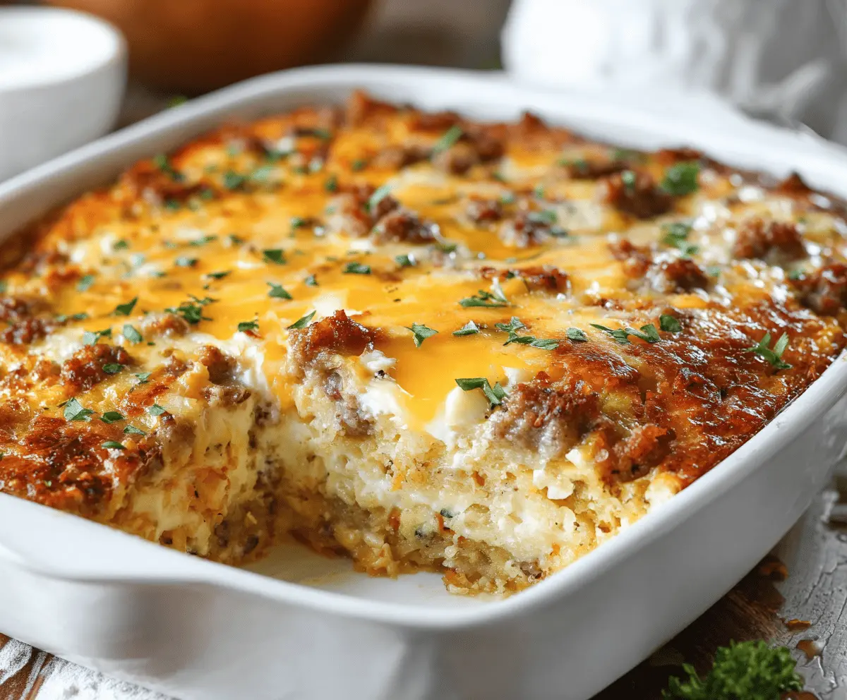 Sausage Egg Cream Cheese Hashbrown Breakfast Casserole