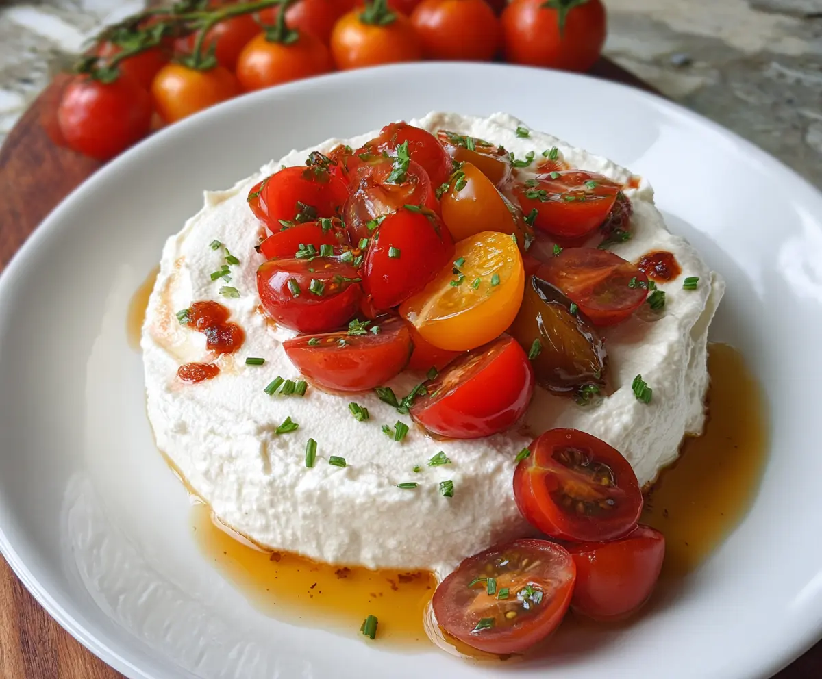 This whipped base serves as the perfect canvas for the warm, seasoned tomatoes—mixing temperatures really elevates the flavors! Enjoy assembling your dish!