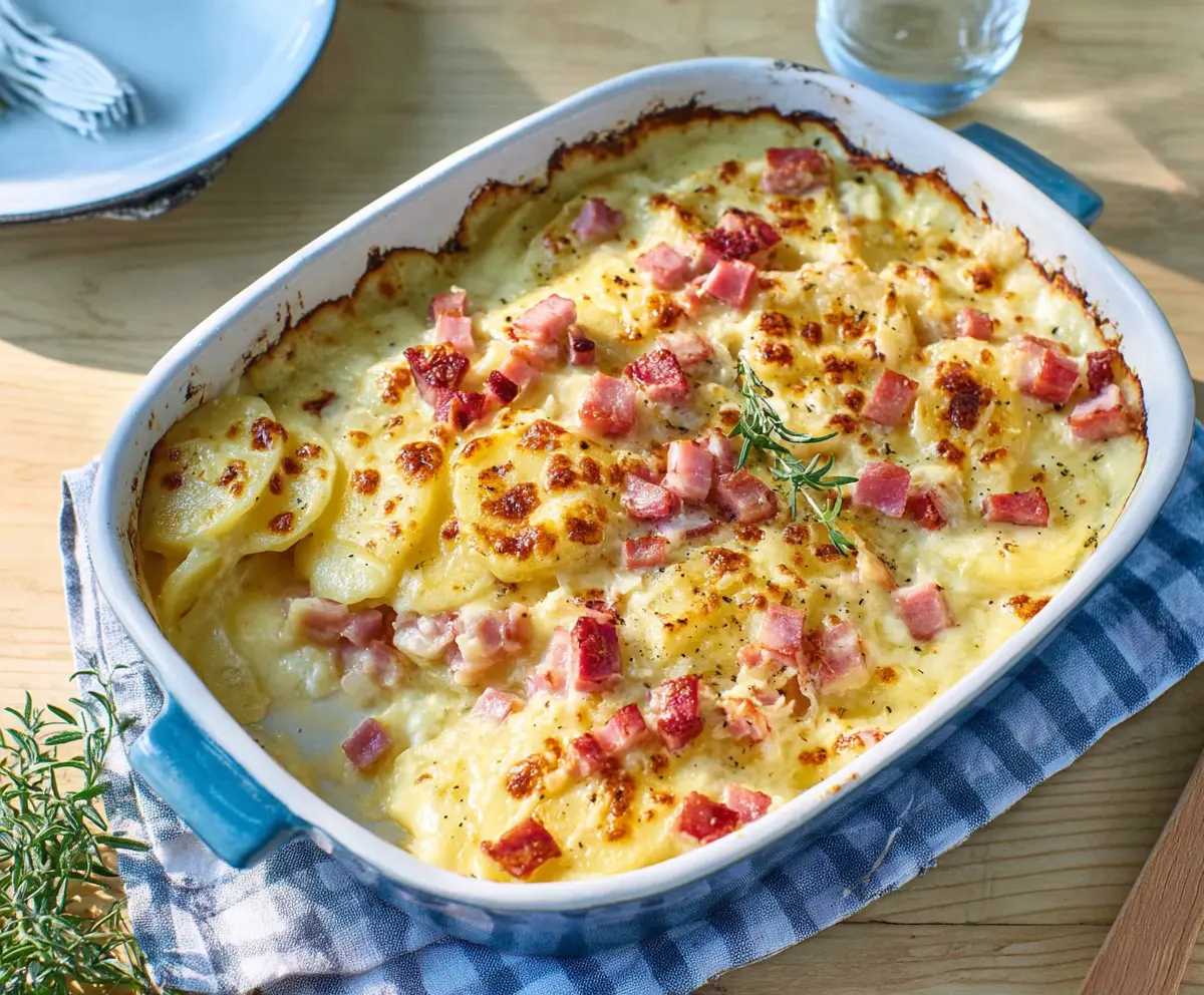 Scalloped potatoes and ham is a cozy dish that brings together creamy, cheesy potatoes layered with tasty bits of ham. It’s baked to bubbly perfection and makes a great comfort meal!