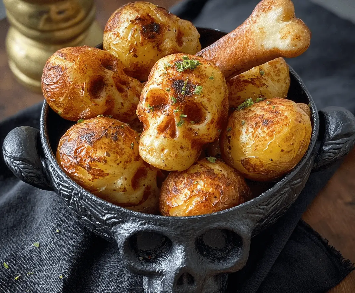 Start by preheating your oven to 400°F (200°C). Make sure to wash and dry the baby potatoes well. If you have skull-shaped molds, lightly grease them and then press the potatoes firmly into the molds. If you don’t have molds, no worries! Just use a small knife to carve out eye sockets and nostrils on each potato to give them that creepy skull look.