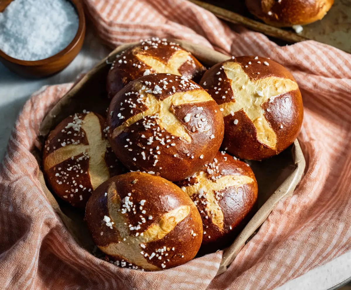 Enjoy these chewy, flavorful pretzel buns perfect for sandwiches or just devouring with a little butter! 🥨