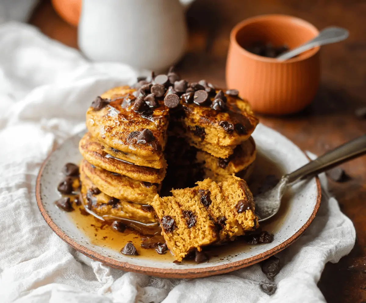 These spiced pumpkin chocolate chip pancakes are fluffy and delicious! Perfect for a cozy breakfast, they combine warm pumpkin spice with sweet chocolate treats.