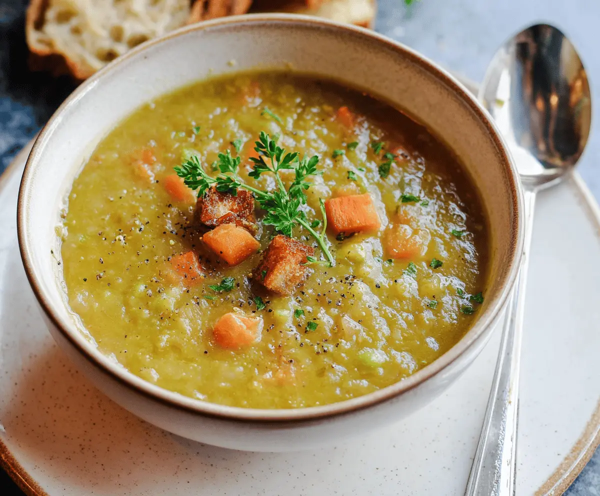 Enjoy the cozy warmth and flavor of this delightful split pea soup – perfect for any day!