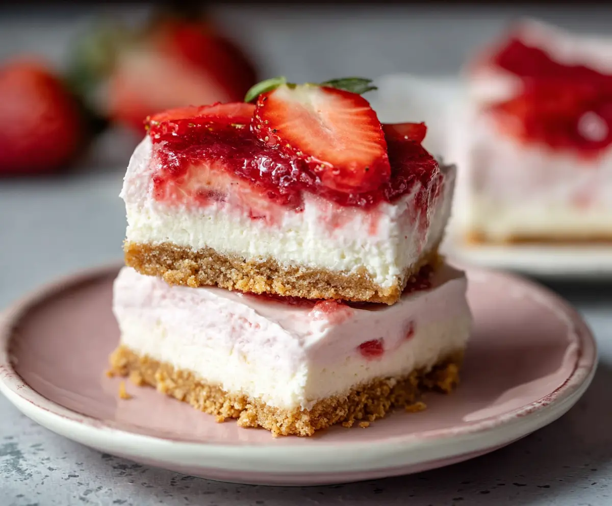 These Strawberry Cheesecake Bars are sweet and creamy, combining the delightful taste of strawberries with a rich cheesecake filling. Perfect for a summer treat!