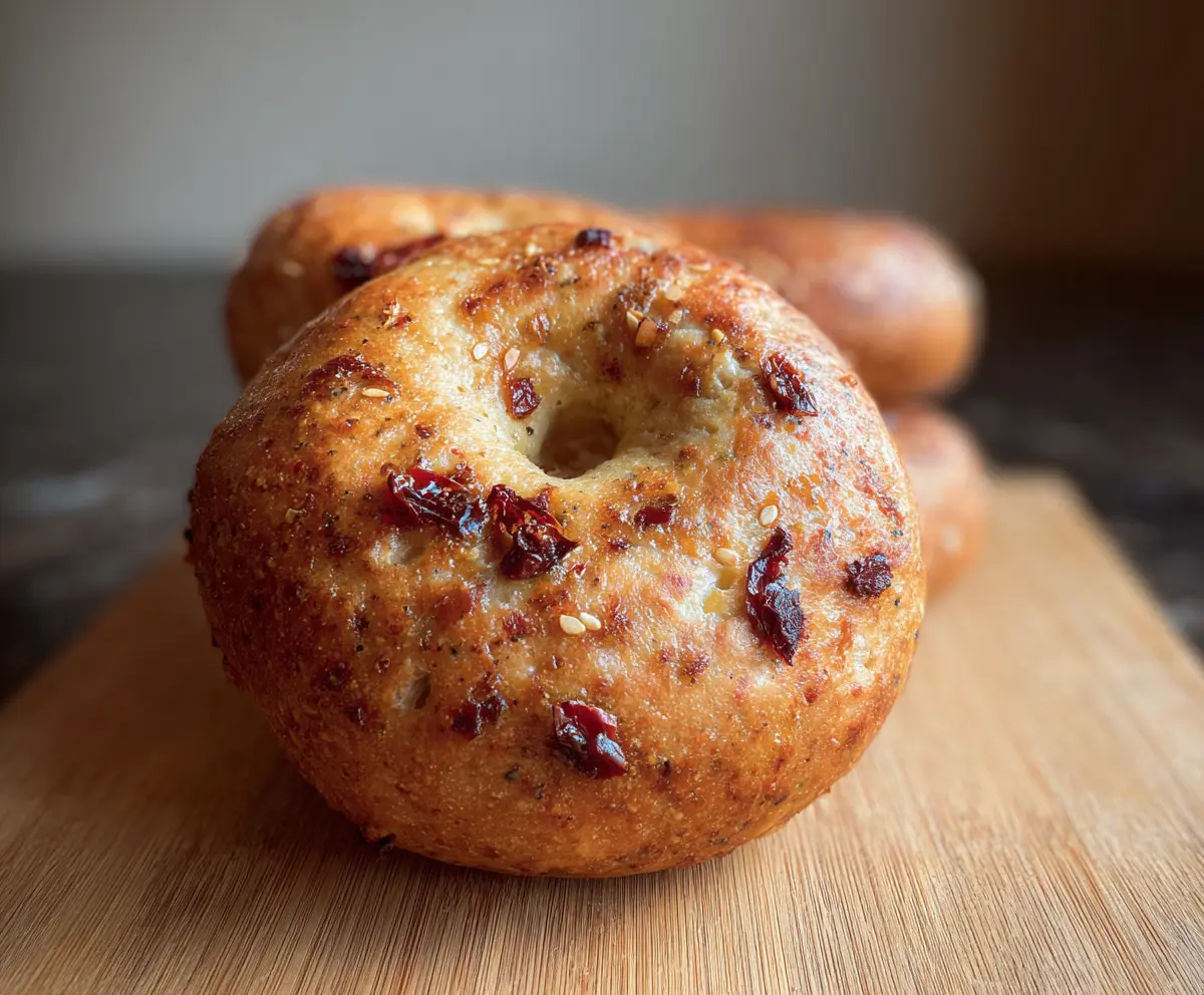 These Sun-Dried Tomato Sourdough Bagels are a tasty twist on the classic bagel! The bright flavor of sun-dried tomatoes shines through, making each bite special and delicious.
