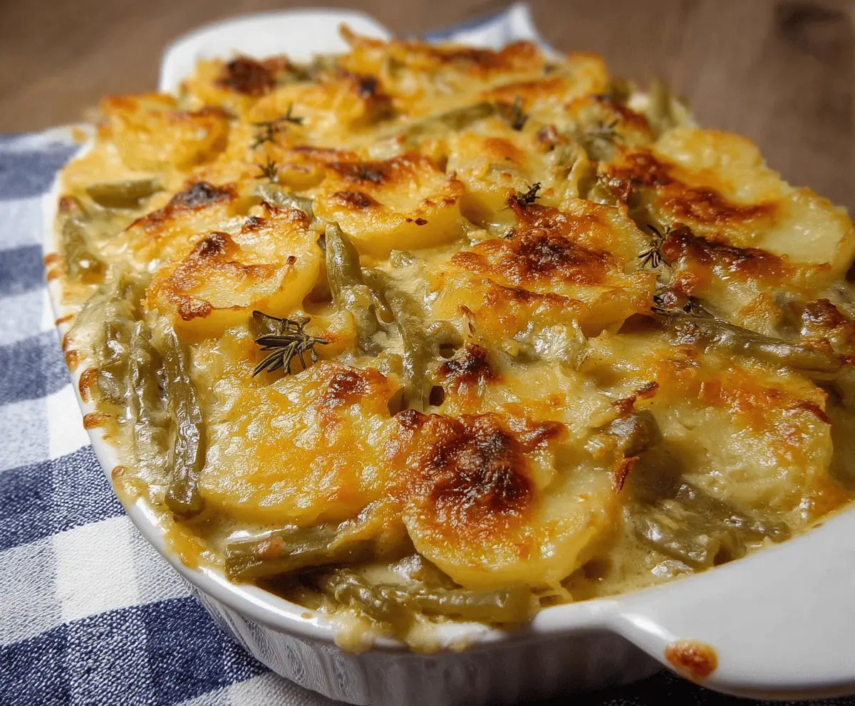 This Green Bean Casserole with Potatoes is a creamy and hearty dish that adds a fun twist to the classic recipe! It features fresh green beans, crispy potatoes, and a tasty sauce.